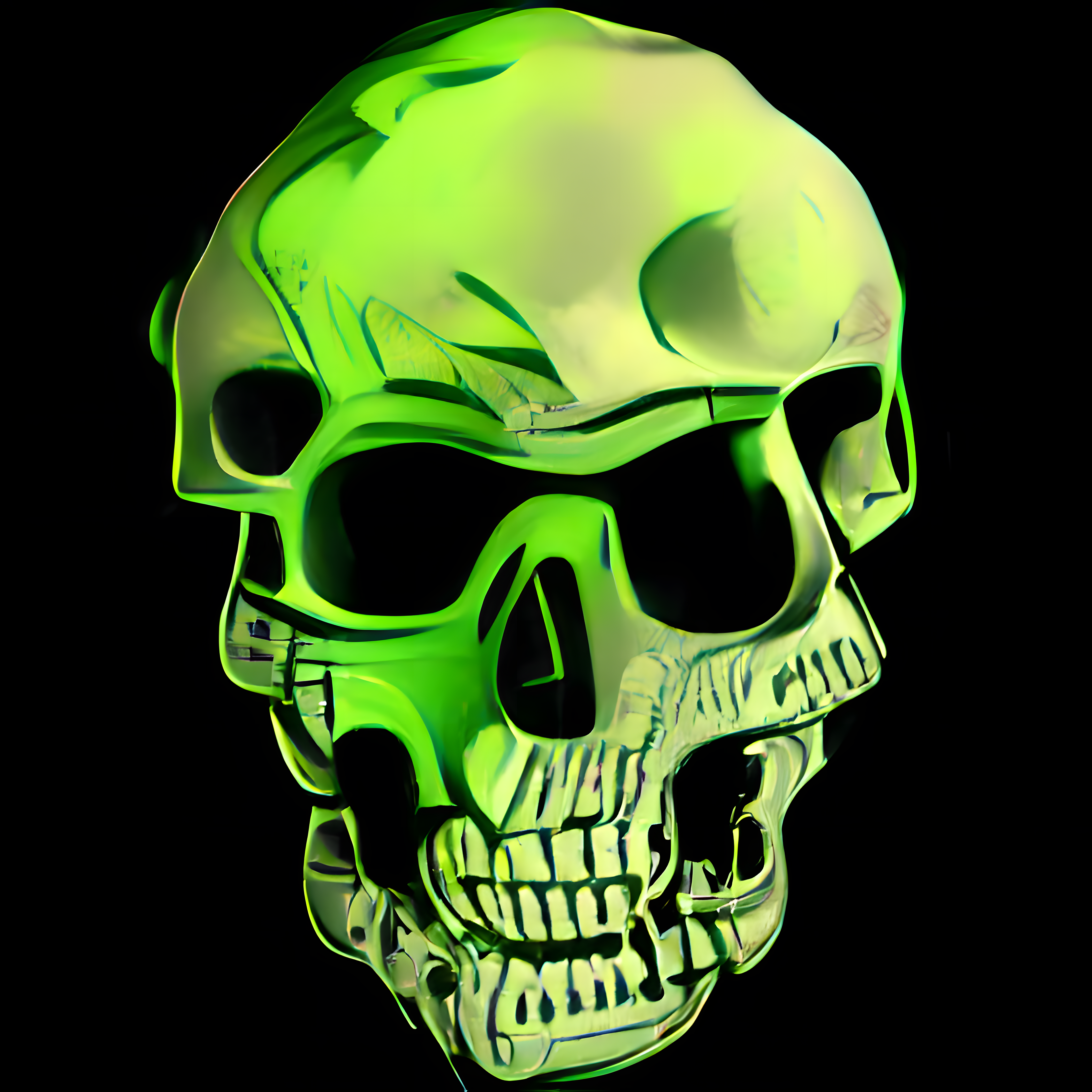 Artwork #1261 of the skulls.ink NFT collection was drawn from shades of black, darkkhaki, darkgreen, darkslategray, darkolivegreen, sienna, steelblue and limegreen.