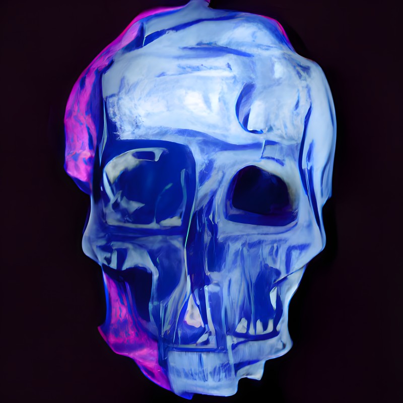 Artwork #1692 of the skulls.ink NFT collection was drawn from shades of black, darkslateblue, darkslategray, midnightblue, purple, cornflowerblue, darkorchid and lightsteelblue.
