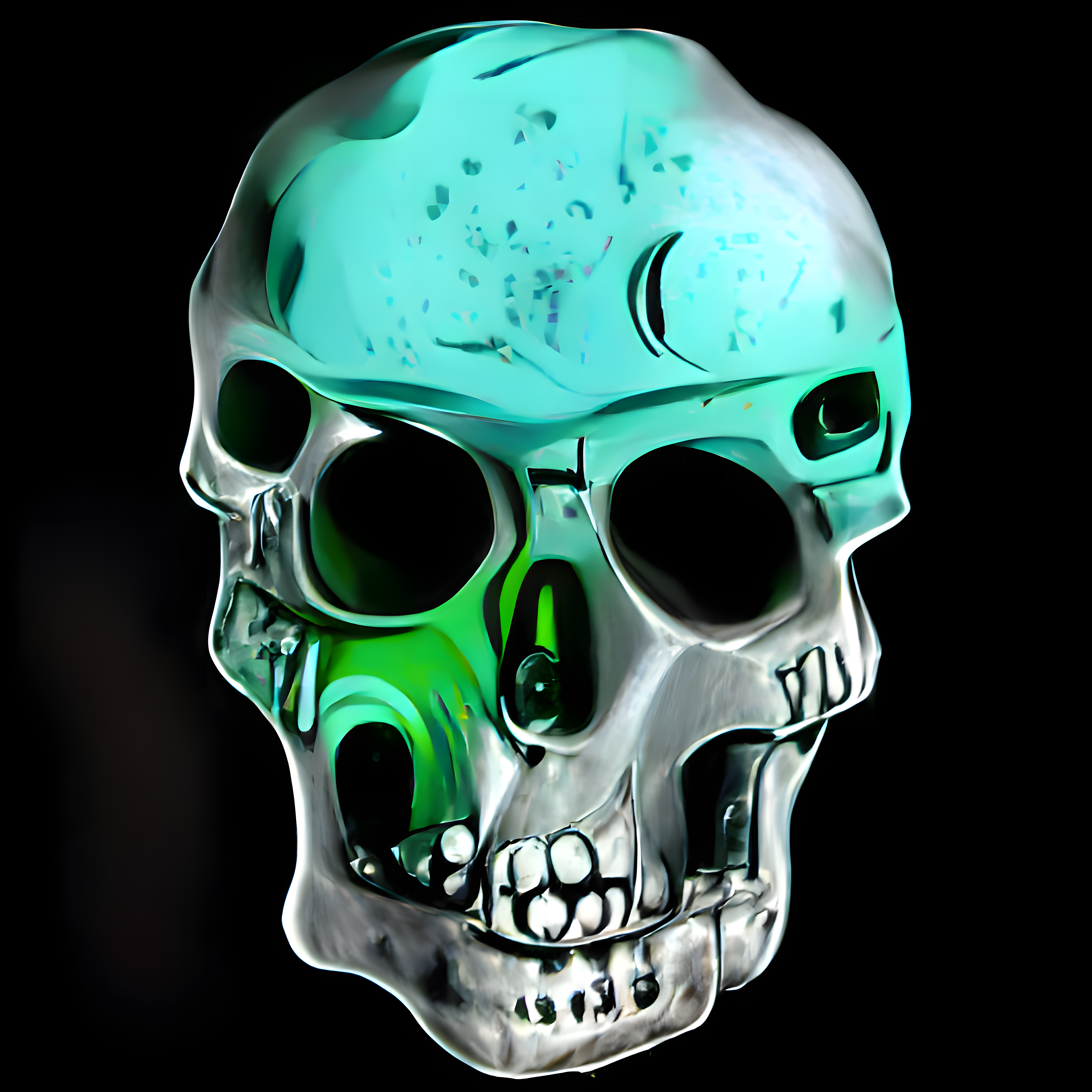 Artwork #190 of the skulls.ink NFT collection was drawn from shades of black, mediumaquamarine, darkslategray, dimgray, steelblue, darkorchid and lightsteelblue.