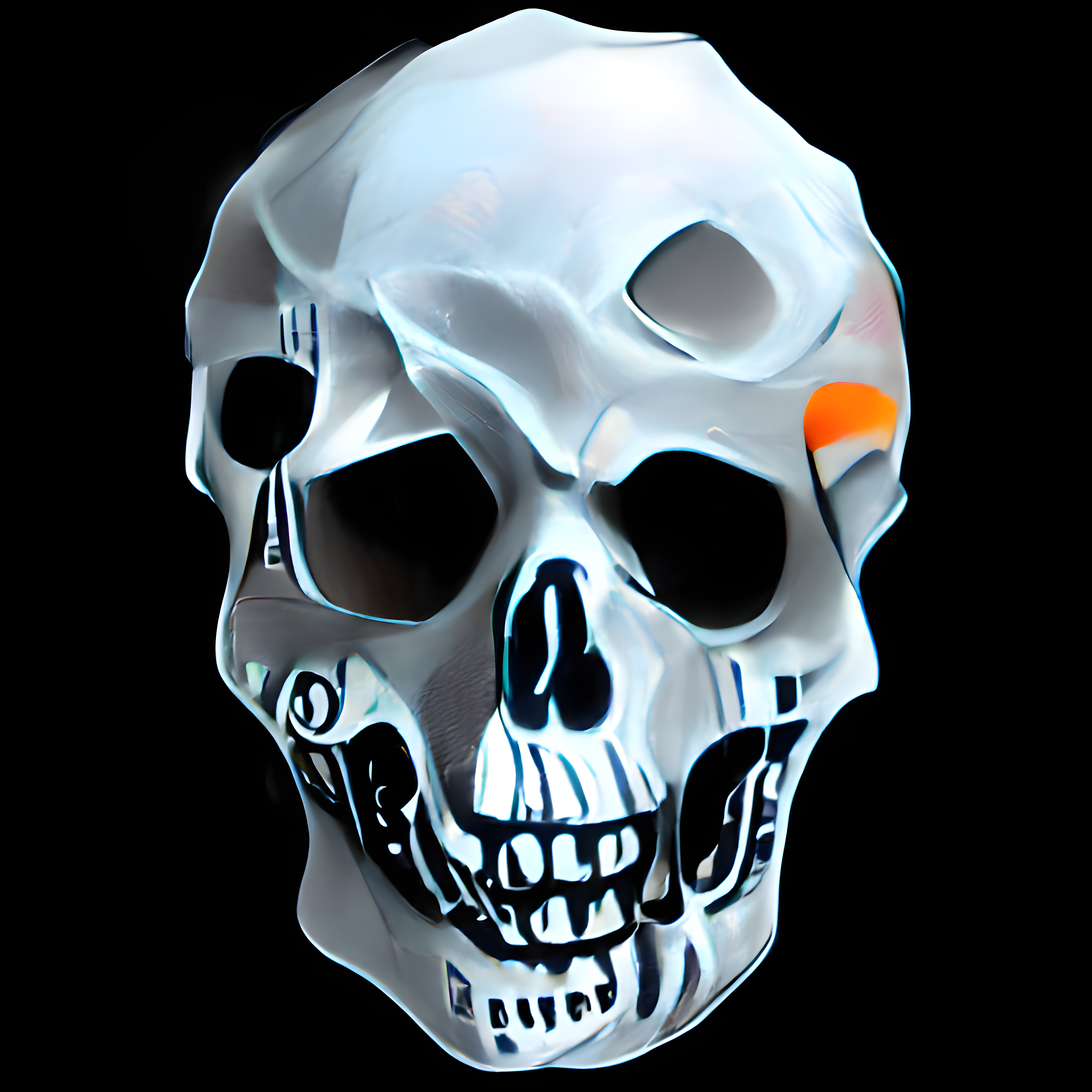 Artwork #1956 of the skulls.ink NFT collection was drawn from shades of lightgray, black, cadetblue, slategray, orangered, darkslategray and dimgray.