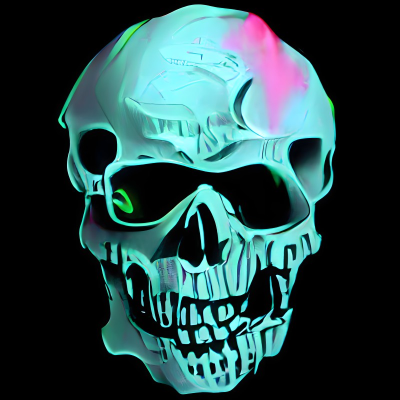 Artwork #2003 of the skulls.ink NFT collection was drawn from shades of black, darkslategray, mediumturquoise, hotpink, dimgray, steelblue and lightblue.