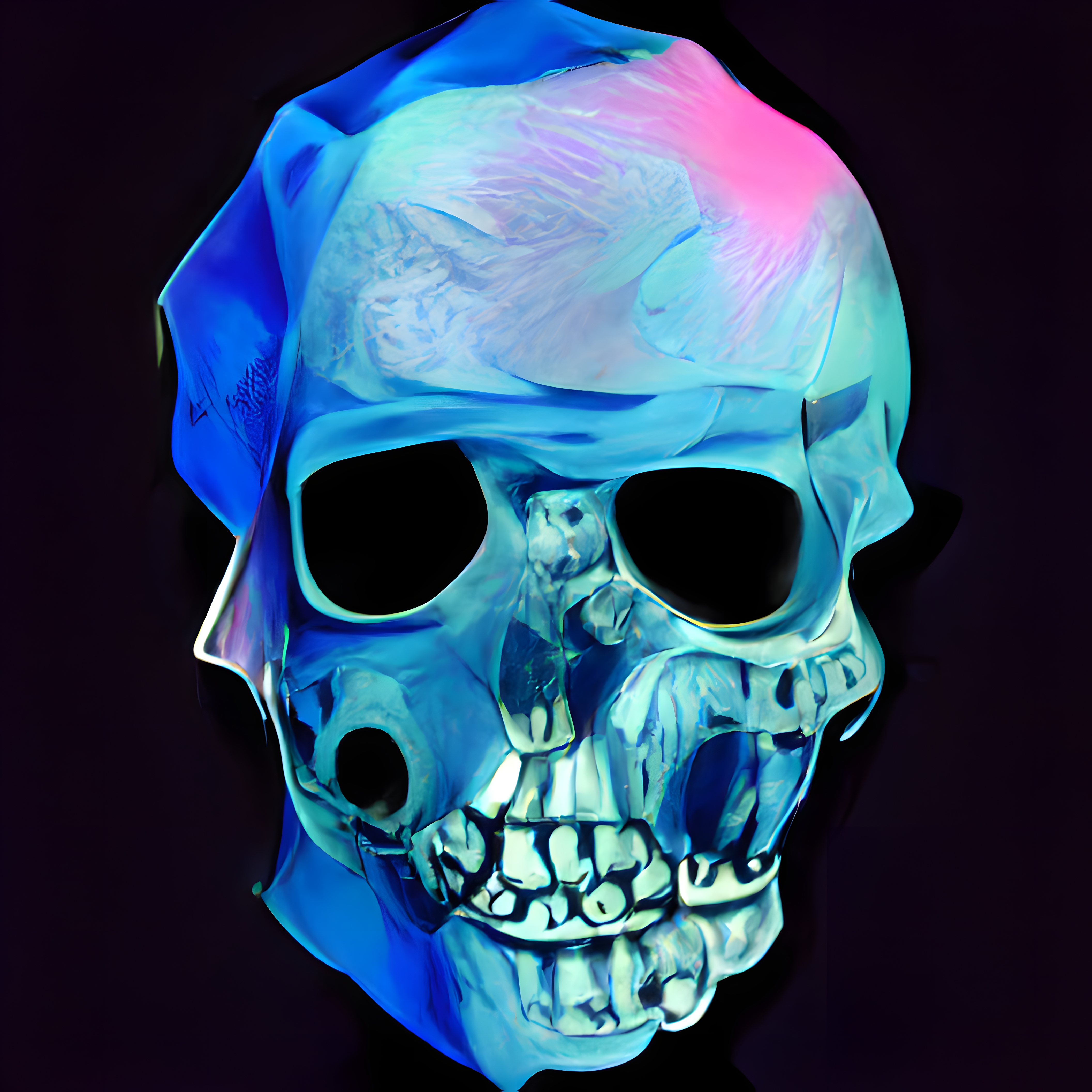 Artwork #54 of the skulls.ink NFT collection was drawn from shades of black, royalblue, darkslategray, mediumturquoise, dimgray, midnightblue, mediumorchid and lightsteelblue.